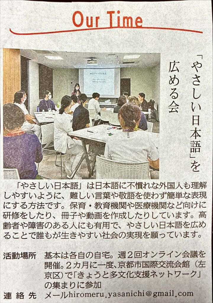 2026.1.16(金)、京都新聞朝刊の「Our Time」欄にて活動内容を掲載していただけました